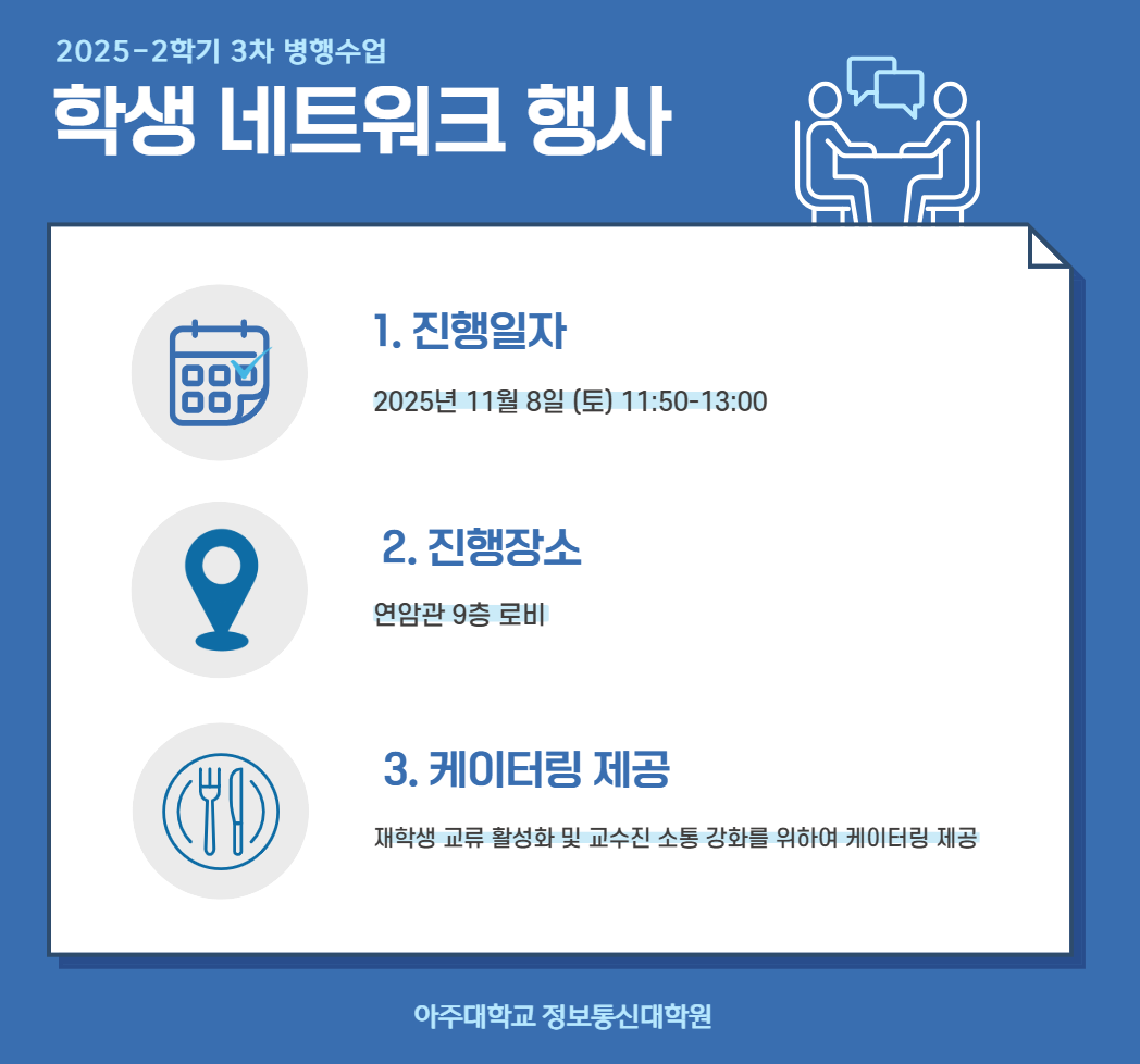 [공지] 병행 3차 특강 및 학생 네트워킹 행사 안내 (11월 8일)