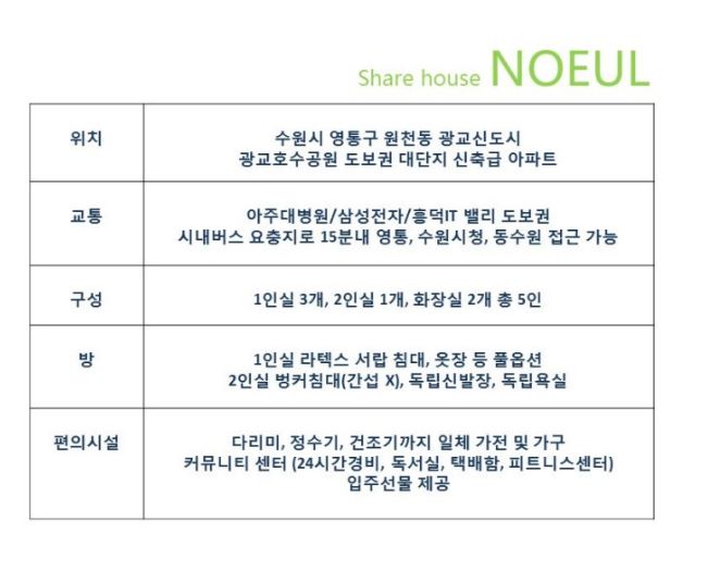 아주대 원천동 쉐어하우스 입니다 (여성전용, 아주예쁨)