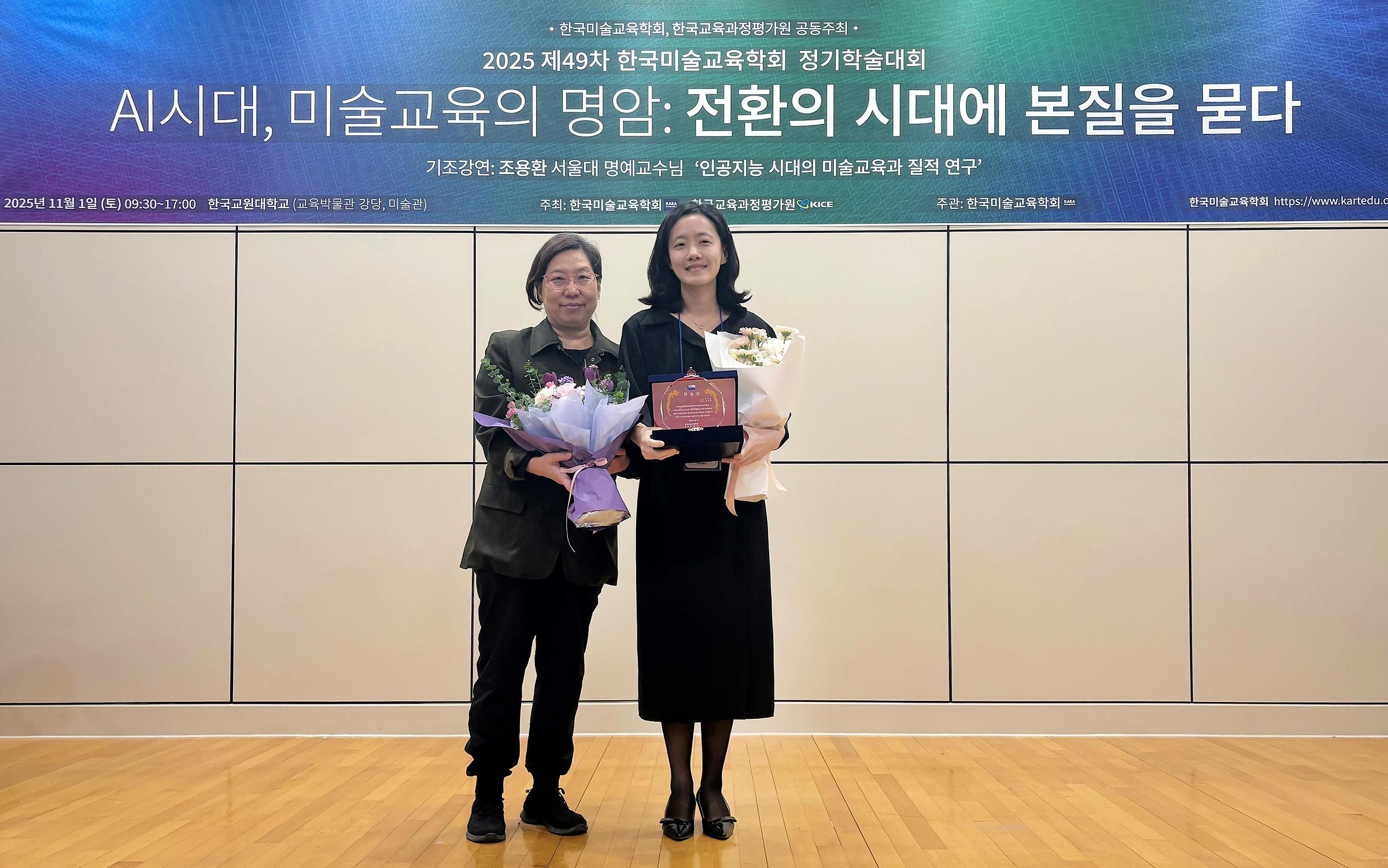 학술상 시상은 지난 1일 한국미술교육학회와 한국교육과정평가원이 공동 주최한 <제29차 한국미술교육학회 정기학술대회>에서 진행됐다. 학회는 연구자의 연구 성과와 미술 교육 발전에의 기여도를 종합 평가해 수상자를 선정했다.