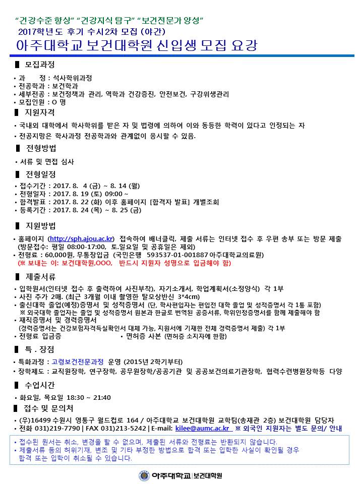 | 4204 | 입학 | 보건대학원교학팀 | 2017-08-08 |