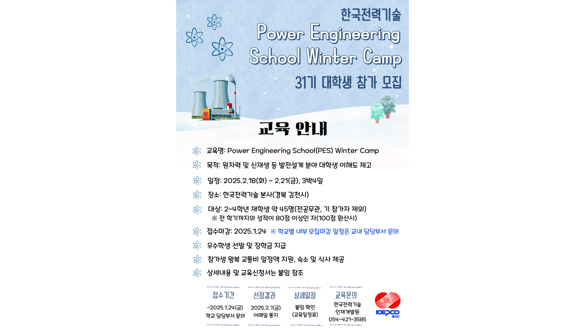 [일자리+센터] [기업탐방]한국전력기술(주) Power Engineering School Winter camp 31기 모집(2명 선발)