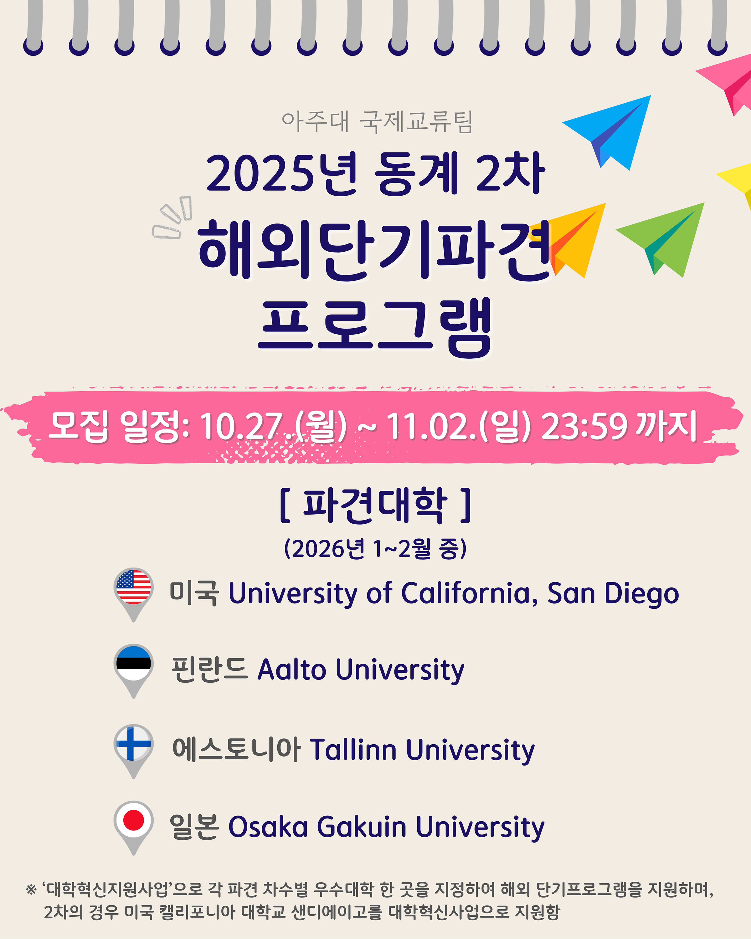 [Outgoing] [국제교류팀] [동계 2차] 2025 해외단기파견 프로그램 참가자 모집 (10/27~11/2)