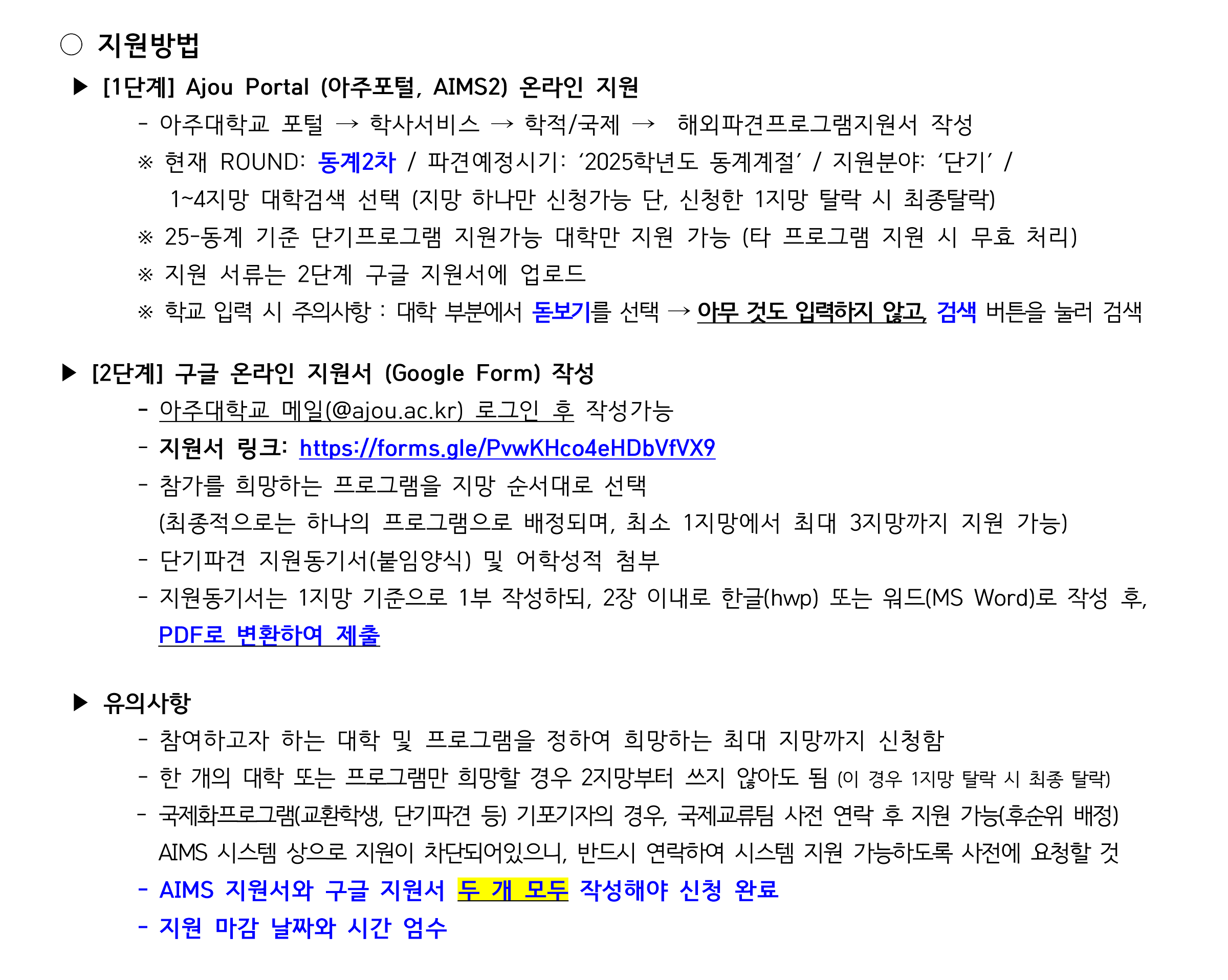 ▷ 2025.10.27.(월) 15:00 ~ 2025.11.02.(일) 23:59까지 | 지원서 작성 (★★★아주포털 및 구글폼(지원동기) 꼭 2개 모두 작성!★★★)